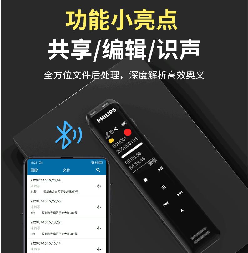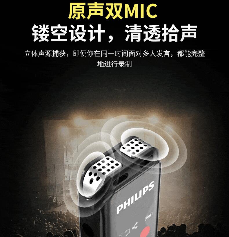 飛利浦VTR5103 Ai智能錄音筆轉(zhuǎn)文字翻譯專業(yè)高清降噪小型超長待機(jī)